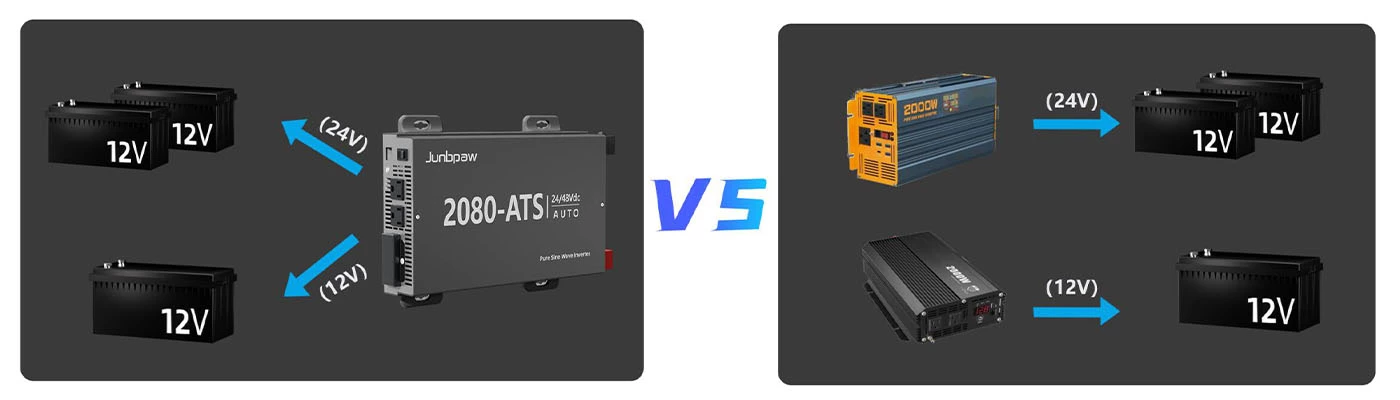 3.Long-term cost efficiency: While the upfront cost of this inverter may be slightly higher than that of a standard single-voltage model, it is far more economical than buying two separate units (one for 12V and one for 24V)—offering exceptional cost-performance value.