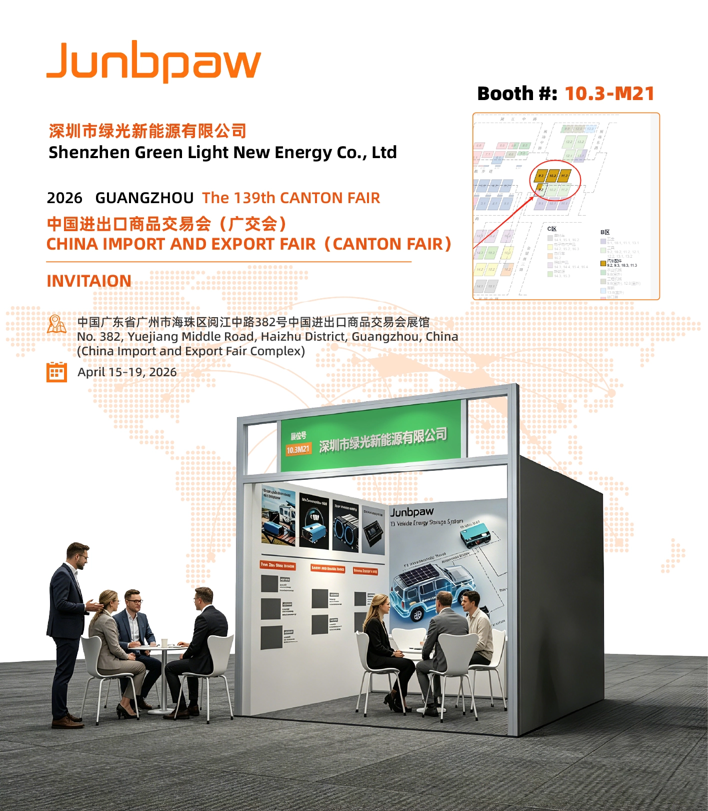 From April 15 to 19, 2026, the Canton Fair will be grandly held at the China Import and Export Fair Complex. Shenzhen Green Light New Energy Co., Ltd., with over 17 years of expertise in the vehicle power supply field, sincerely invites you to visit our booth to explore unlimited possibilities.