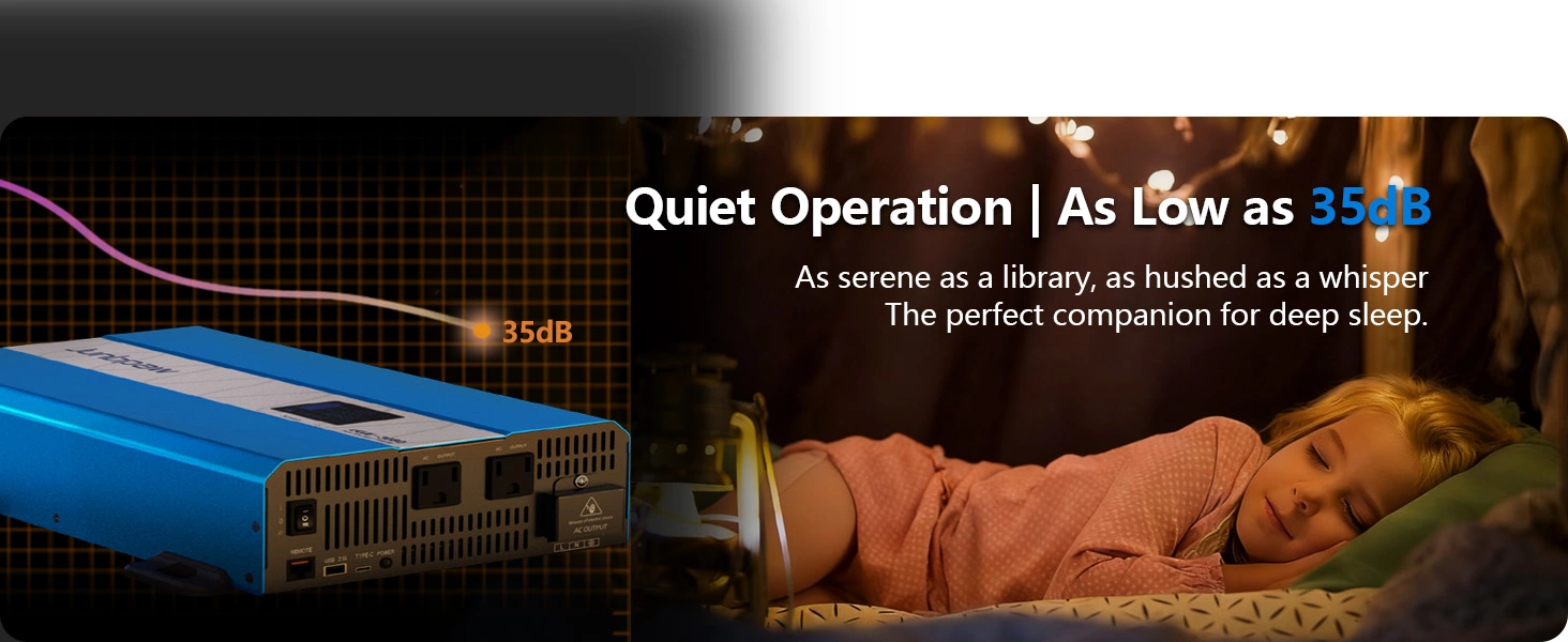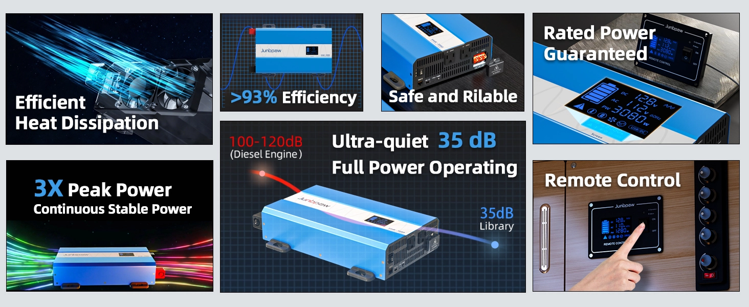 Runs quiet for a inverter this size minimal fan noise. East to set up and easy to wire lots of room to work. Comes with all necessary wiring included. Remote control makes controlling the unit safe and easy with a button push. Perfect for a truck, boat or RV. This will keep a refrigerator running when the power goes out. Great value at this price point this unit gives you more wattage than others in this range. Easy to see and read displays tell you the health of your battery.